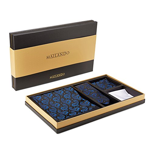 Best Seller! Mailando Men's Gift Set - Kashmir Scarf, Tie and 2 x Breast Pocket Handkerchiefs in a High-Quality Gift Box – blue Review