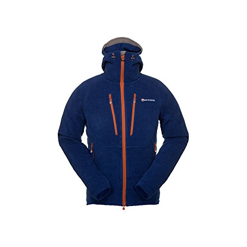The Volt Alpiniste Jacket provides exceptional comfort and warmth when climbing, belaying and hiking in cooler conditions. Utilizing outstandingly warm yet lightweight, durable POLARTEC® Thermal Pro® Honeycomb which is zoned with POLARTEC® 100 Series to ensure unrestricted freedom of movement and comfort. Technical tailoring in the arms and side panels eliminates hem lift; essential for stretching between holds on the wall or when reaching with trekking poles. A fully adjustable hood with a wired peak allows the Volt Alpiniste to be layered in cold weather clothing systems and makes this an ideal piece for use the mountains. Montane Volt Alpiniste Outdoor Jacket CONSTRUCTION The jacket is made from POLARTEC® Thermal Pro® Honeycomb which traps heat inside the fibres to keep the wear warm without feeling weighed down thanks to its outstanding warmth to weight ratio. POLARTEC® 100 is also used in key areas like the sides and elbow panels to offer much-needed temperature regulation and comfort. HOOD AND POCKET CONFIGURATION The hood on the Volt Alpiniste is fully adjustable with a wired peak to get a comfortable and convenient fit depending on your requirements in different weather conditions. Two map-sized pockets lined with mesh can be found on the chest of the jacket for storage and extra ventilation. There are also two deep hand-warmer pockets lined with a fine micro fleece mesh and positioned well clear of a backpack harness for convenience and storage. CENTRE FRONT ZIP AND HEM CONSTRUCTION A full length, reversed and baffled two way YKK reverse coil zip down the center on the jacket works as a great way to enhance coverage or ventilation. Brushed fine microfleece is used on the inner collar next to the mouth and chin for a comfortable feel against the skin. The hem of the jacket is easily adjusted to prevent cold air entry and heat loss.